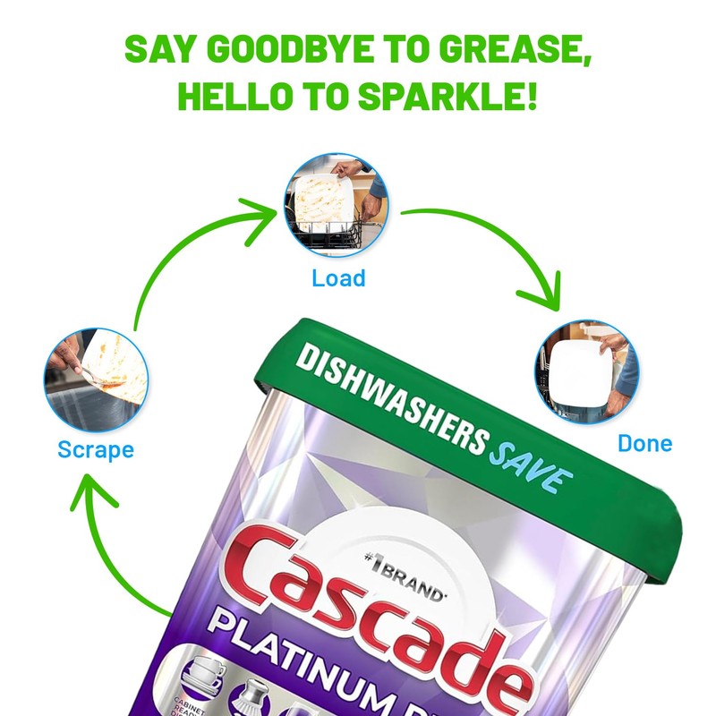 - For Cabinet-Ready Dishes: With the Cascade Platinum Plus dishwashing pods, your dishwasher will deliver squeaky clean dishes ready for the cabinet while saving water! Cost-effective and powerful, the Cascade dishwasher pods are here to fight grease and make your dishes shine!