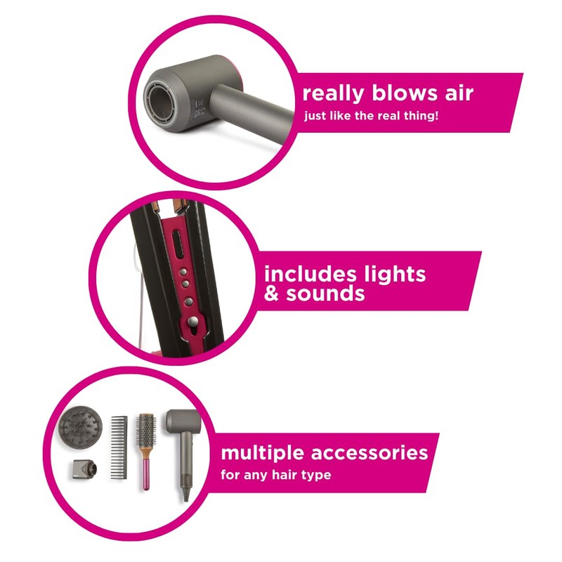Casdon Dyson Toys - Supersonic & Corrale Deluxe Styling Set - Toy Straightener & Hairdryer with Real Function - Features Interactive Lights & Sounds - for Children Aged 3+