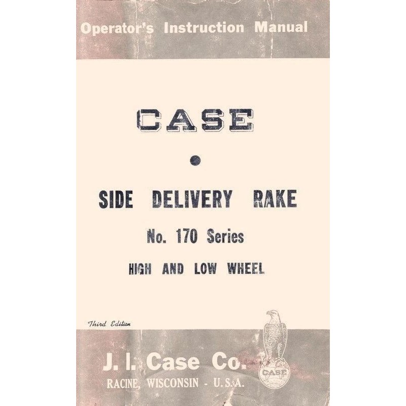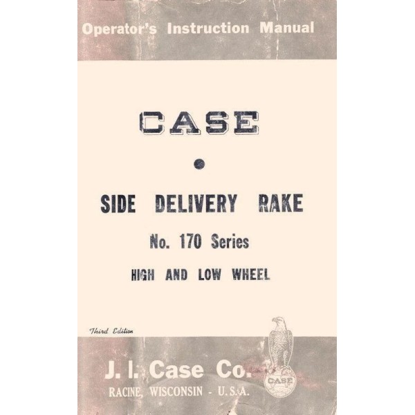 Case - Side Delivery Rake No. 170 Series High and Low Wheel Operators / Instruction manual is a reproduction of an original manual and is excellent source of information on using your Side Delivery Rake and covers maintenance and many general mechanical repairs.