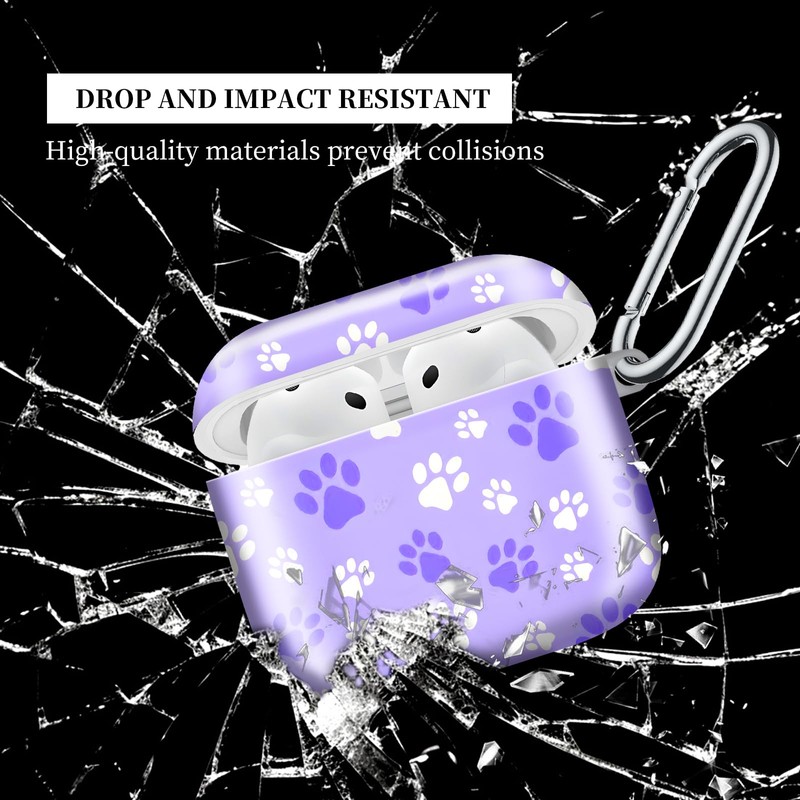 Case Compatible with AirPod 4th Generation 2024,Shockproof Protective Case Cover with Keychain for Women Men,Wireless Accessorie Charging Cases for Airpod 4th - Purple Dog Paw