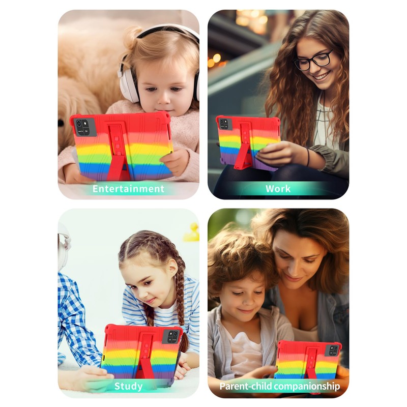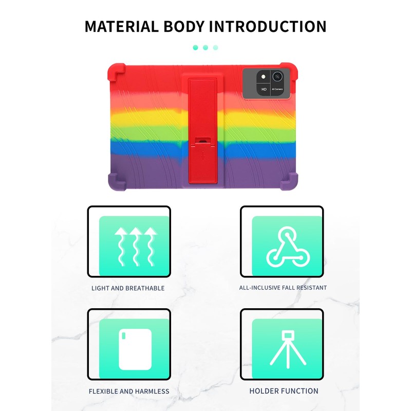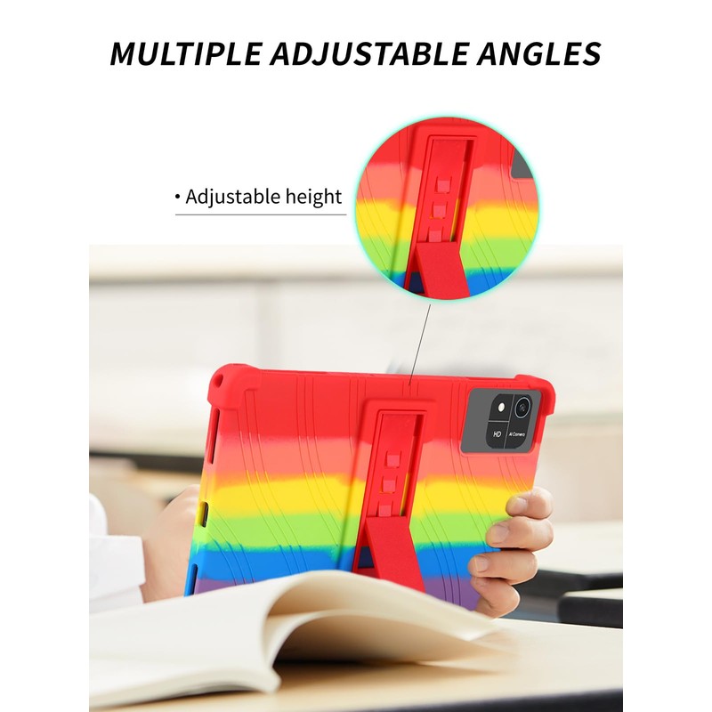 Case for aiprotablet A30 10.1 Inch Android 15 Tablet,WUNIAK Shock Proof Lightweight Stand Rubber Shell Protective Cover,Kids Friendly Soft Silicone Adjustable Stand Cover,Rainbow