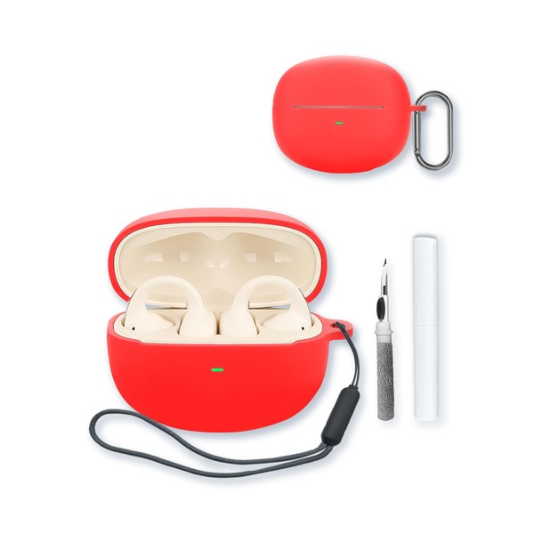Case for Baseus Bowie MC1 Open Ear Clip-On Earbuds,Soft Protective,BOVUGAC Silicone Case Cover with Keychain & Cleaning Kit & Lanyard for MC1 Earbuds-Red