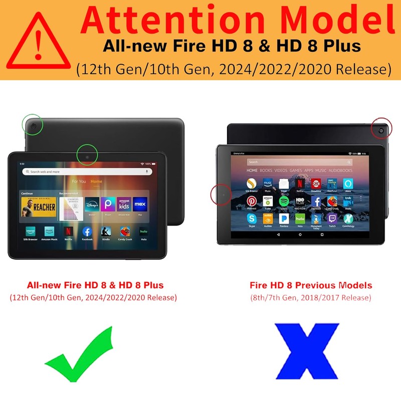 -- Designed for All-New Fire HD 8 & Fire HD 8 Plus Tablet (12th/10th Generation, 2020/2022/2024 Release,not compatible with any previous product or any other tablet.