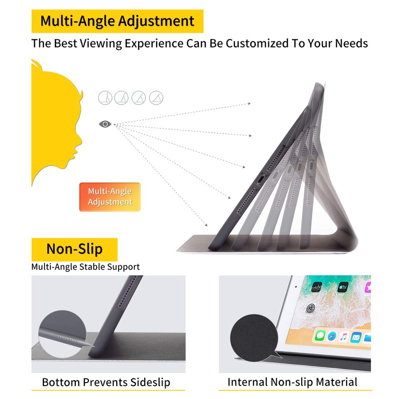 -- Viewing angle frees your hands from other activities and avoids any joint pain, and adjustable angle enables you to type or draw comfortably.