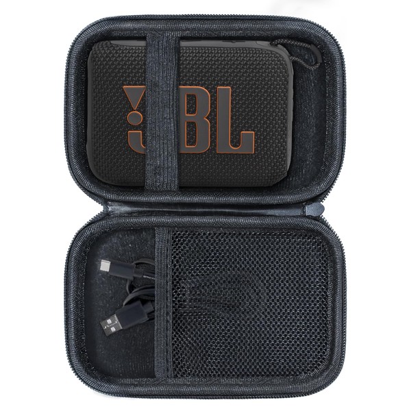 - Tailored for Convenience: Securely store and protect your JBL GO 4 or JBL GO4 wireless speaker in this durable hard case. Featuring internal elastic bands, this case firmly holds your JBL Bluetooth speaker in place while providing separate compartments for necessary cables and adapters, ensuring everything remains organized and easily accessible.