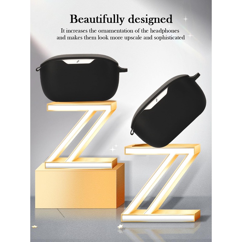 Case for JBL Wave Buds 2 Earbuds,Soft Protective,Shockproof, BOVUGAC Silicone Case Cover with Keychain & Cleaning Kit & Lanyard-Black