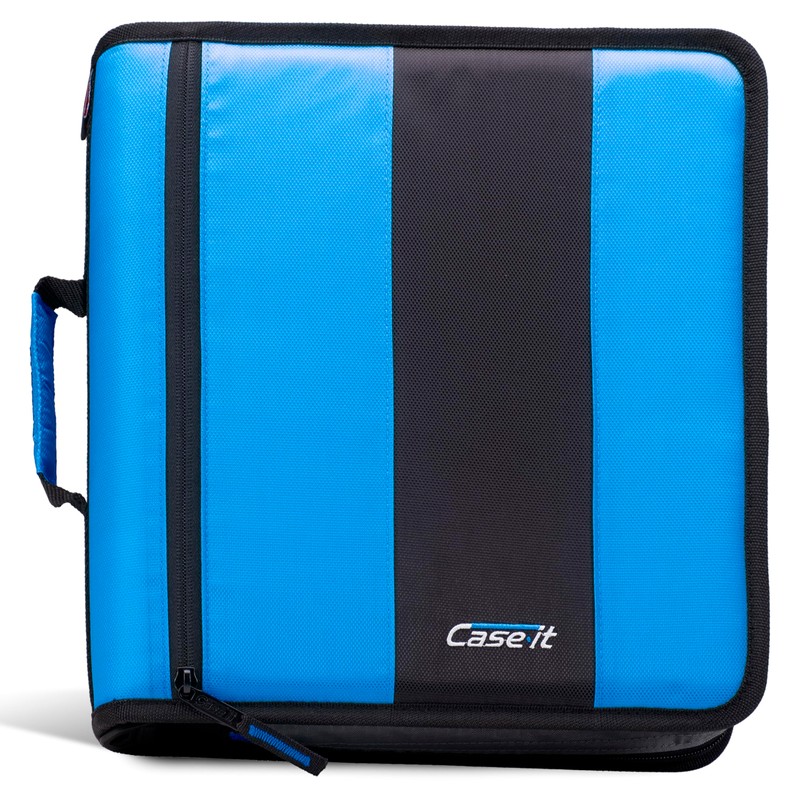 Case-it Classic Zipper Binder | 2-Inch O-Rings, 350 Sheet Capacity, Multiple Storage Pockets & Shoulder Strap | School & Office Organizer | D-251 Denim Blue