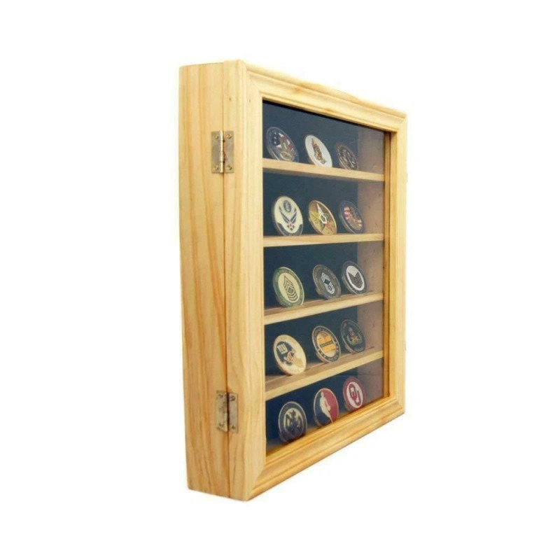 • DECOMIL - Lockable 30 Military Challenge Coin, Poker Chip, Sports Coin Display Case Cabinet, Glass door, Coin30-OAK