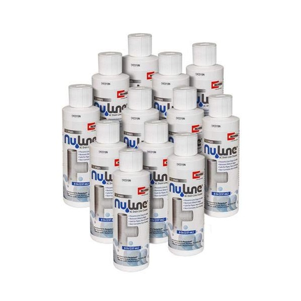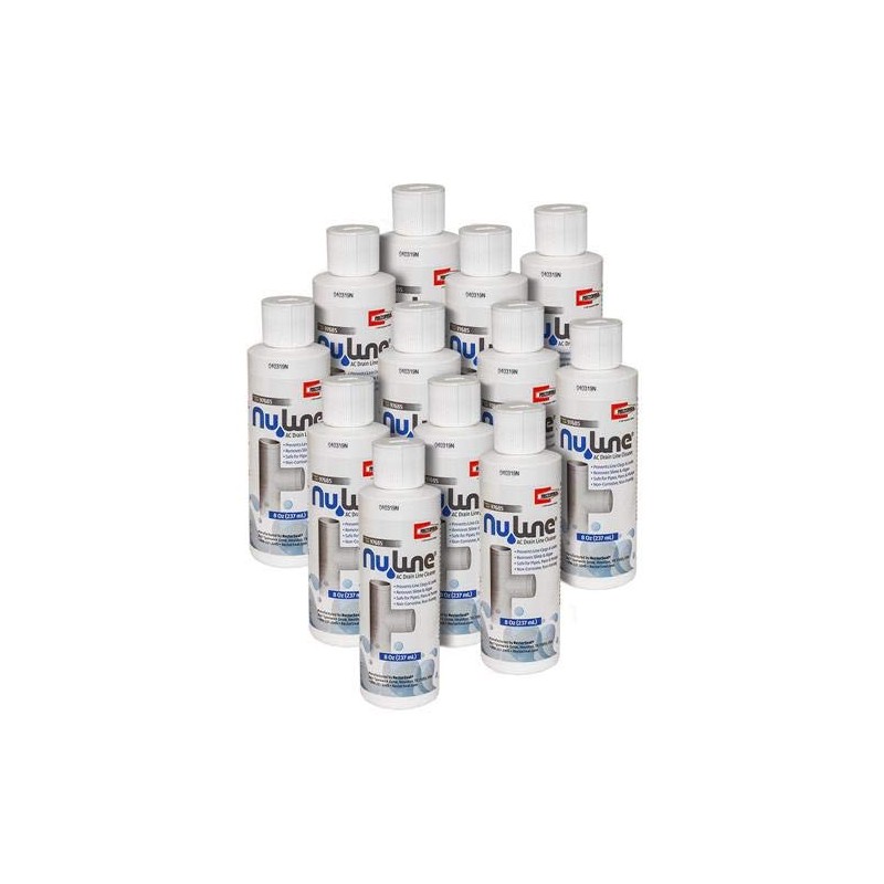 Item Specifications: Nu-Line provides cleaning action for soil and build up and water deposits in air conditioner and refrigeration drain lines , pans and condensate pumps. Also for ice machines , drinking fountains and soft drink machine drain pans and lines. SAME PROVEN FORMULA...Brand New Packaging!