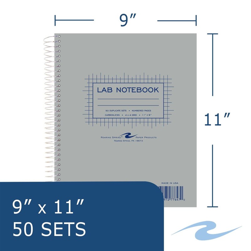 This book is ideal for use in labs and science classes. The 15# paper has a white original sheet and yellow copy sheet. The top white sheet is printed with 4 square/inch graph layout, and the canary sheet is unprinted. The book includes sheets of carbon paper that can be removed and placed between the white and canary sheets. Sets are consecutively numbered 1-50 The front covers is made from durable 20 pt grey pressboard, , and the back is 30 pt brown kraft. The book is spiral bound along the 11" side, and wire ends are coil-locked for snag proof performance. There are 50 sets per book.12 units per case. Sold by the Case