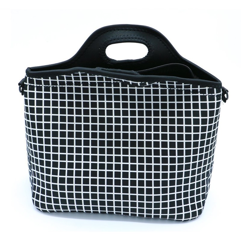 - The lunch tote bag with removable, adjustable shoulder strap and durable zipper can be carried in hand, arm or over shoulder. Soft grip handles make it easy to carry. The smooth zip compartment on the top prevents your belongings from falling out.