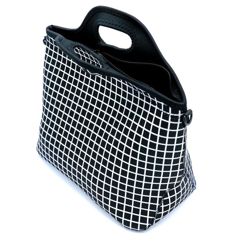Case Wonder Lunch Taschen, Neopren Lunch Tote, Isoliert Große Kühler Mittagessen Tasche, wiederverwendbare waschbare Lunch Box mit Schultergurt für Männer / Frauen / Schule(L. Schwarzes Raster)