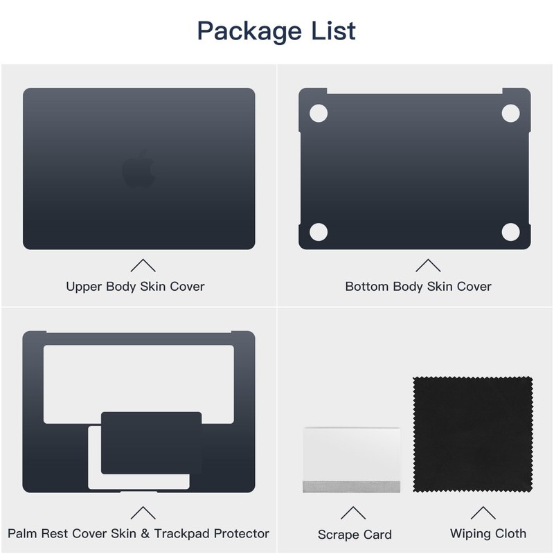 - Customized design, no need to cut by yourself, perfectly color matched to your MacBook that blends in after application.
