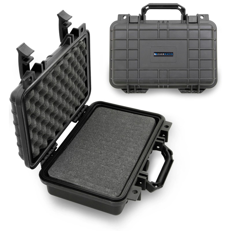 CASEMATIX 12" Waterproof Hard Case with Customizable Foam for Portable Electronics, Tools and Accessories - Hard Shell Plastic Case with Pre-Diced Travel Case Foam Interior