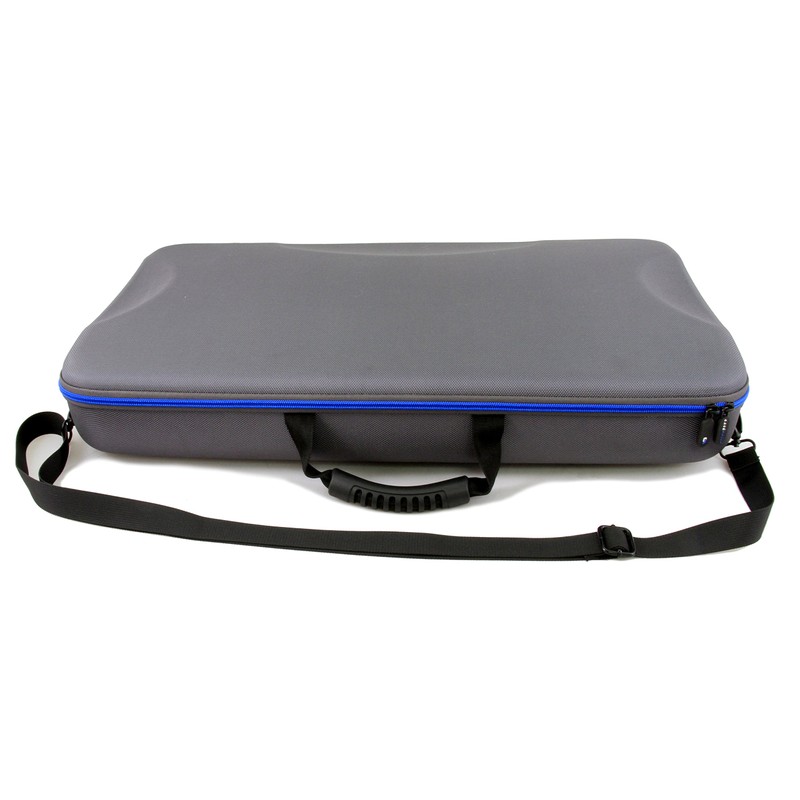 • Travel Friendly Design: Case exterior measures 24 x 15 x 3.5 inches within a sleek gray exterior and blue trim zipper. A built in carry handle and clip on adjustable shoulder strap allow for convenient portability