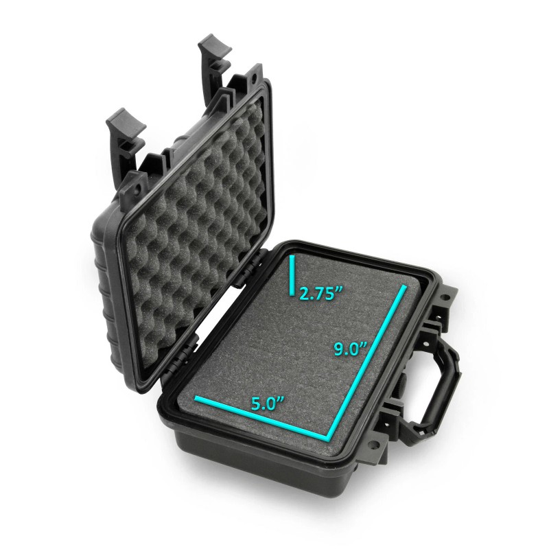 This hard case is easy to transport using its convenient carrying handle. Measuring 12.0" x 8.5" x 3.75" in exterior dimensions, this case is convenient to travel with and holds a variety of accessories. The interior customizable foam area has maximum usable space of 9.0" x 5.0" x 2.75". The carry handle and built in lock holes make this case perfect for securing and protecting your camera at home or while traveling.