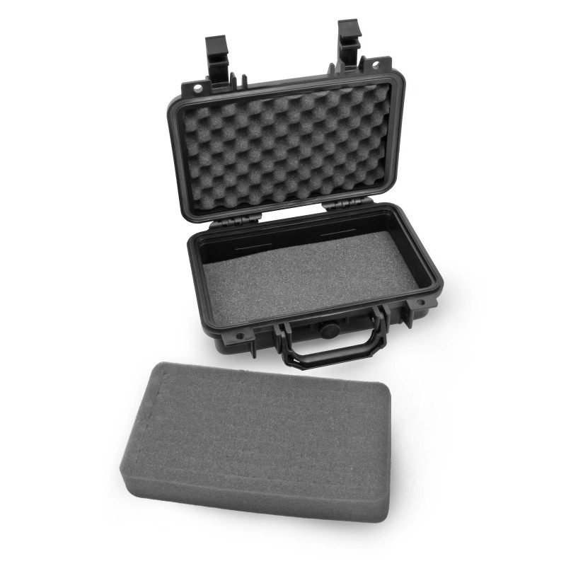 This hard shell case's exterior is made of a dense composite plastic for superior external protection against blunt forces, drops and impacts. Additionally, the case is fitted with an air-tight sealing gasket which locks out water and air to add the highest level of protection to your camera gear. A pressure-release screw can be disengaged to allow for air-pressurization. Interior protection consists of a customizable layer of Diced Diced Foam Foam , Convoluted Egg-Crate Foam Lid and flat foam bottom. With a highly durable exterior and dense foam interior, you can be sure your camera has reliable storage and protection while being neatly stored.