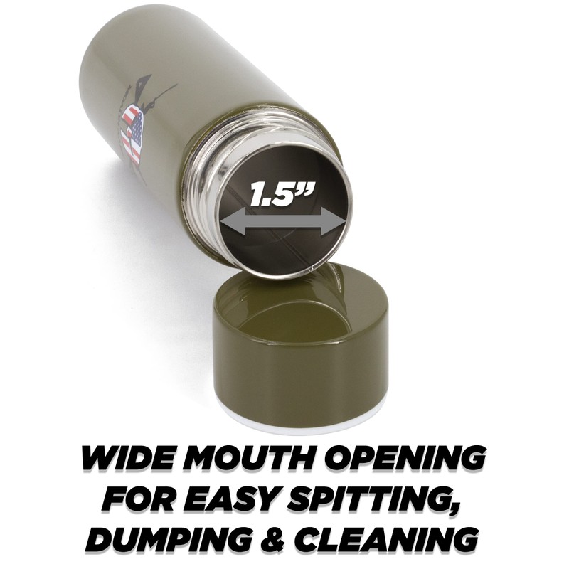 Este spittoon portátil mide solo 5.75 pulgadas de alto por 1.75 pulgadas de diámetro, pero cuenta con una capacidad sorprendentemente grande de 5 onzas. El práctico tamaño te permite guardar fácilmente el recipiente en una bolsa o bolsillo.