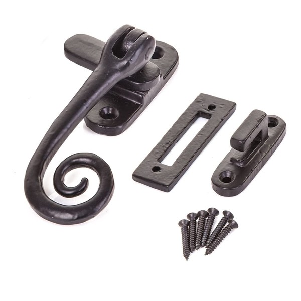 Casement Window Lock Black Antique Window Latch Lock Child Safety Locks for Wooden Window Frames Curly Tail Window Fastener Cast Iron Monkey Tail Mortice Latch 55mm x 95mm