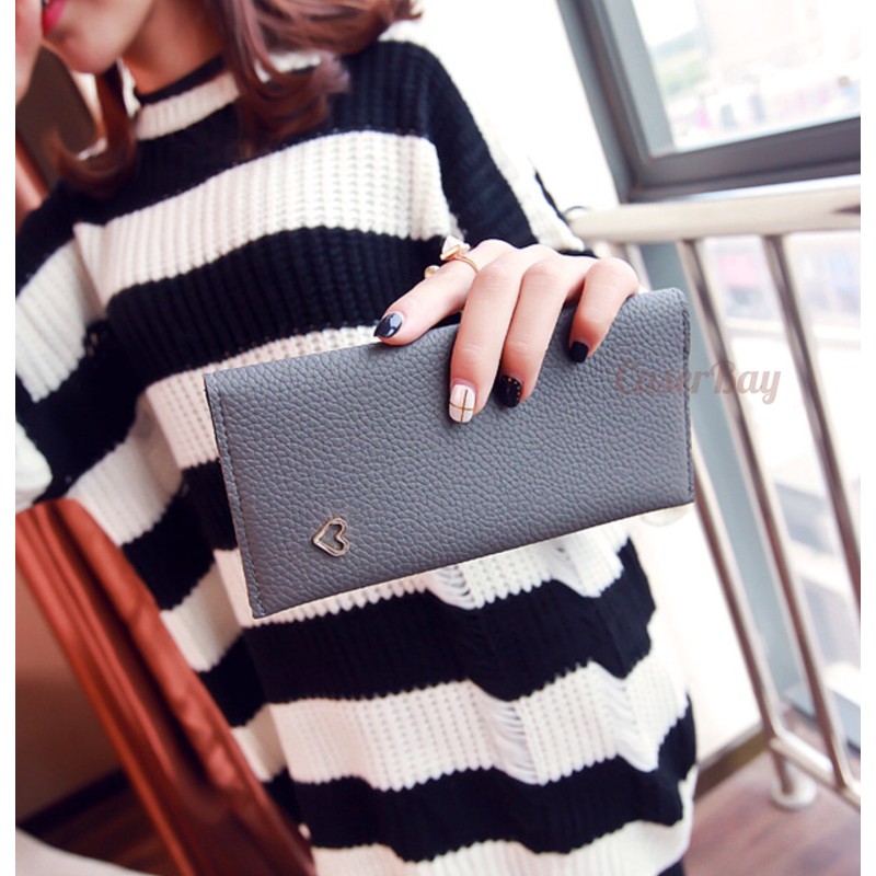 CaserBay] Women's Elegant Lady Concise Slim Long Soft Faux Leather Wallet Card Purse, Gray, One Size, Slim Wallet