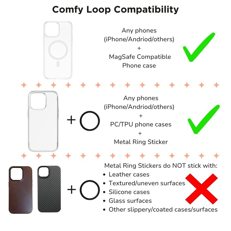 • Package includes: Magnetic Phone Grip Comfy Loop + Metal Rings
