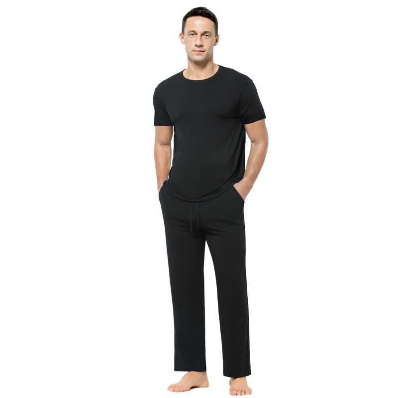 - Mens sleepwear set makes from breathable, soft, lightweight and skin-friendly farbic with good breathability and excellent moisture-wicking, ensuring a comfortable sleep experience.
