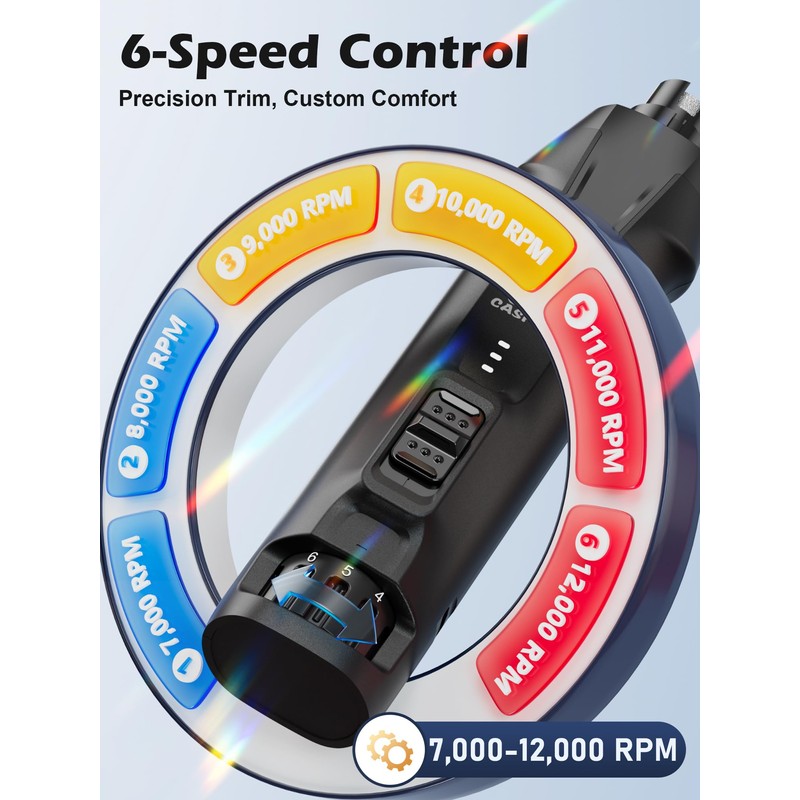 - 【6-Speed Control for Custom Comfort】Adjustable speeds from 7,000 to 12,000 RPM allow you to tailor grinding power based on your pet’s nail size and hardness. Use higher speeds for quick shaping, and lower speeds for precise work near the quick, reducing the risk of discomfort or bleeding. Skip the groomer bills—get smooth, salon-quality results at home with Casfuy dog nail grinder.