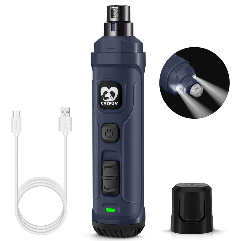 - Upgraded Dog Nail Trimmer with 2 LED Lights: Casfuy electric dog nail trimmer has 2 LED lights that allows you to see the location of dog’s quick easier. Avoiding over-grinding, causing less hurt to your furry friends. Dual LED lights is a new design, lights shine more accurately than other ordinary LED grinder.