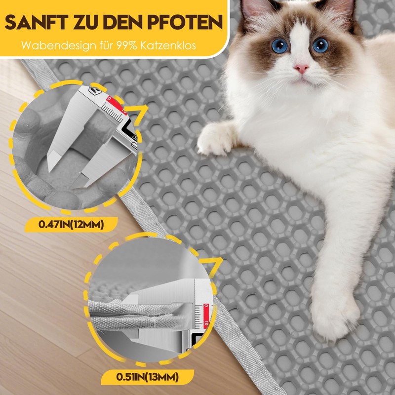 With its double layer design, gentle EVA material and easy cleaning, this cat litter mat ensures a clean and comfortable home - for you and your furry friend. Thoughtful in terms of comfort and durability, it is the perfect addition to your pet accessories, makes cleaning easier and keeps your living space tidy.