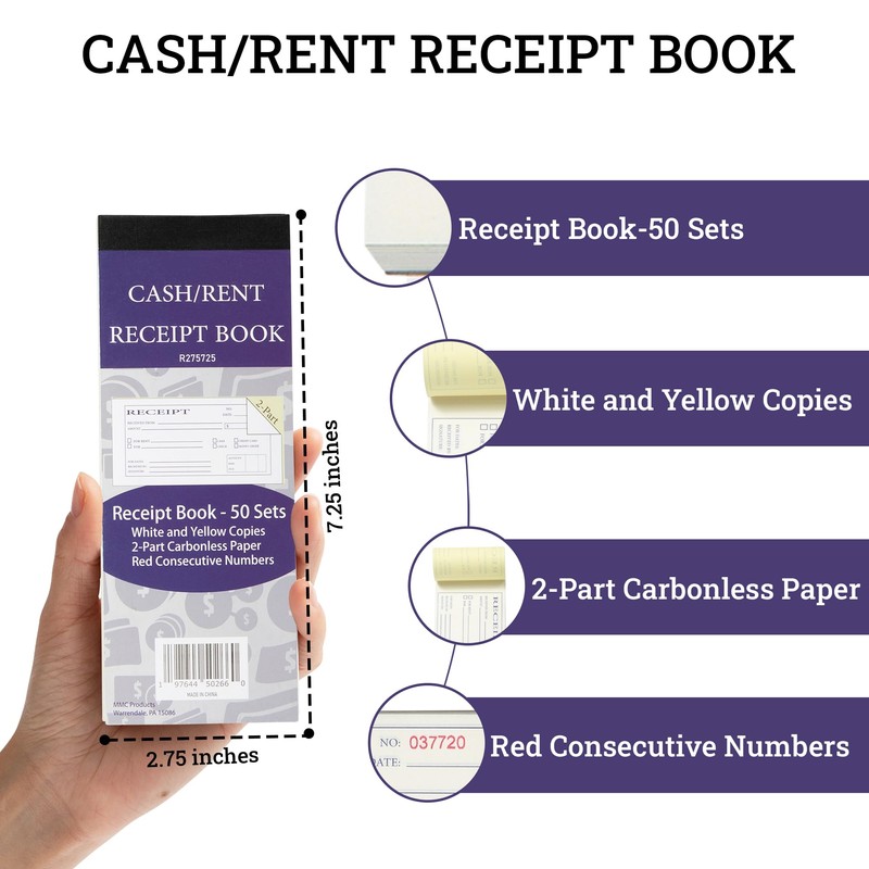 - Contains a Wrap-around back cover to place between receipts to ensure writing does not transfer to the next receipt