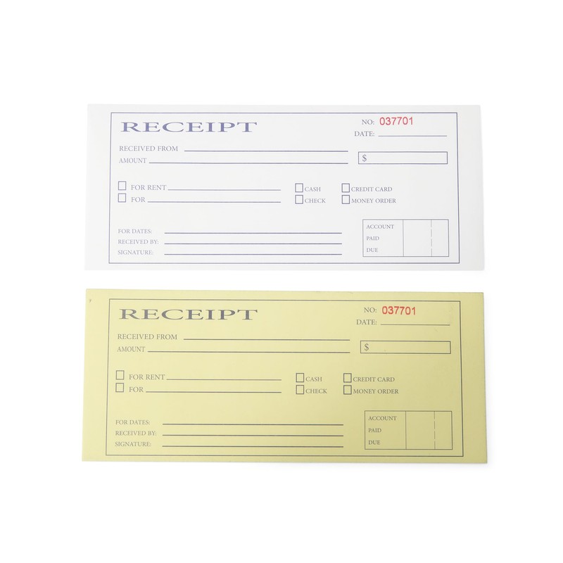 - 2-Part Carbonless rent receipts book with 50 sets per book - White and Canary copies