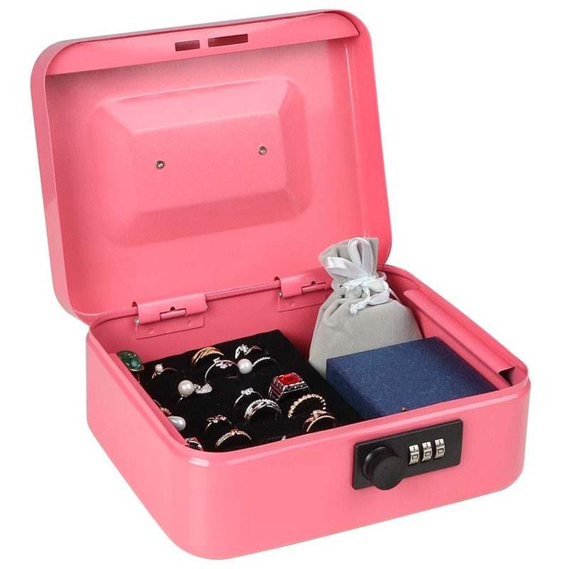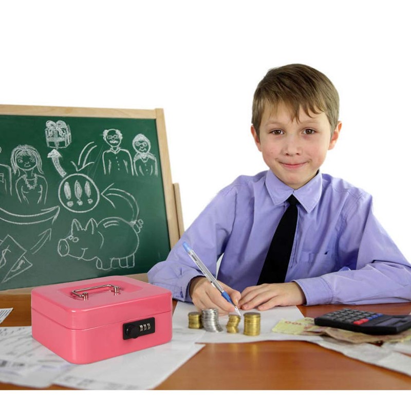 Cash Box with Money Tray, Parrency Medium Money Box with Combination Lock, 7 4/5" x 6 4/5" x 3 3/5", Pink