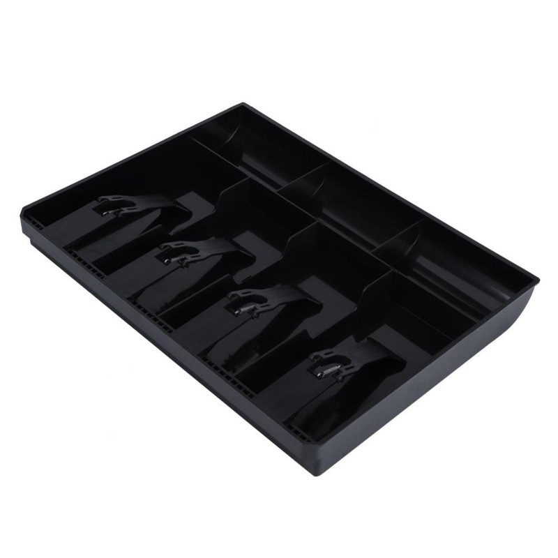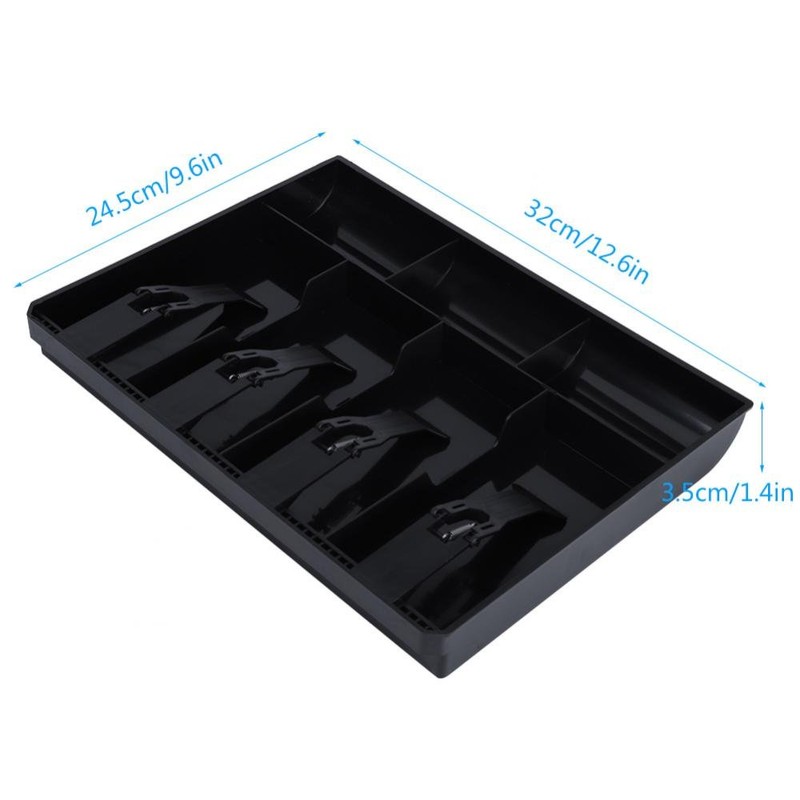 Cash Boxes Cash Drawer Register Insert Compartment Replacement Plastic 4 Banknotes 3 Coin Compartments Money Storage Box 12.6 x 9.6 x 1.4 Inches (Black)