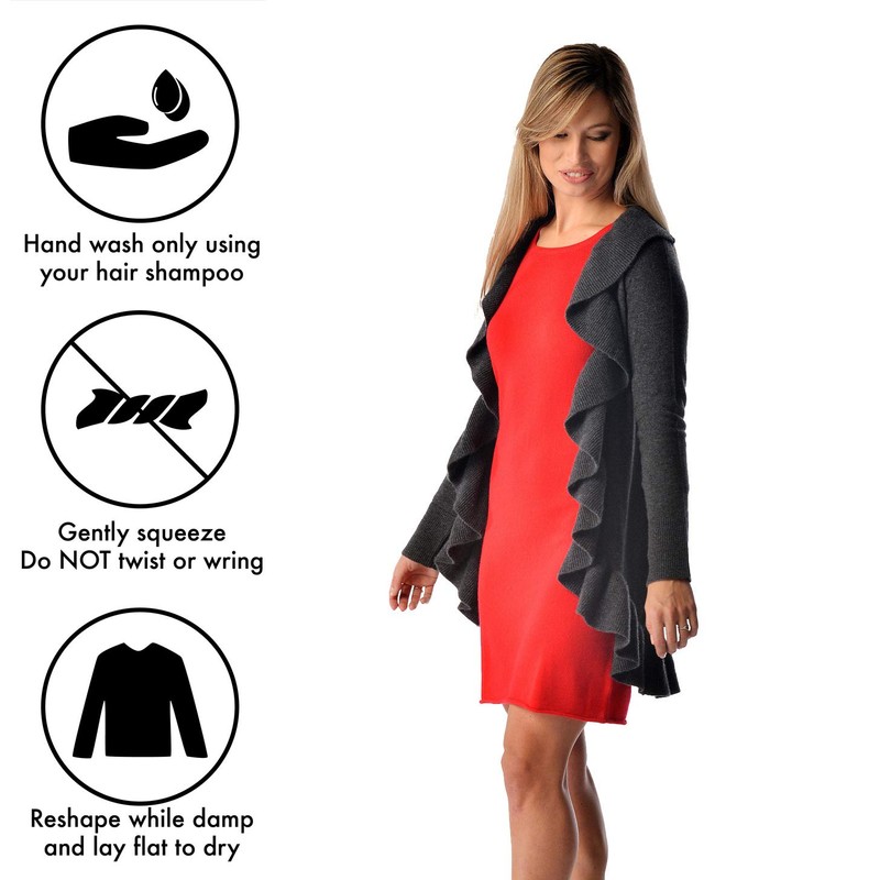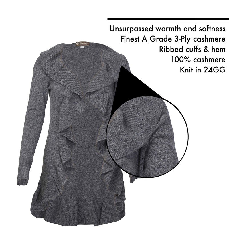 Cashmere Boutique 100% Pure Cashmere Ruffled Long Women Cardigan Sweater - Pullover, Long Sleeve, Front Open, Soft and Warm
