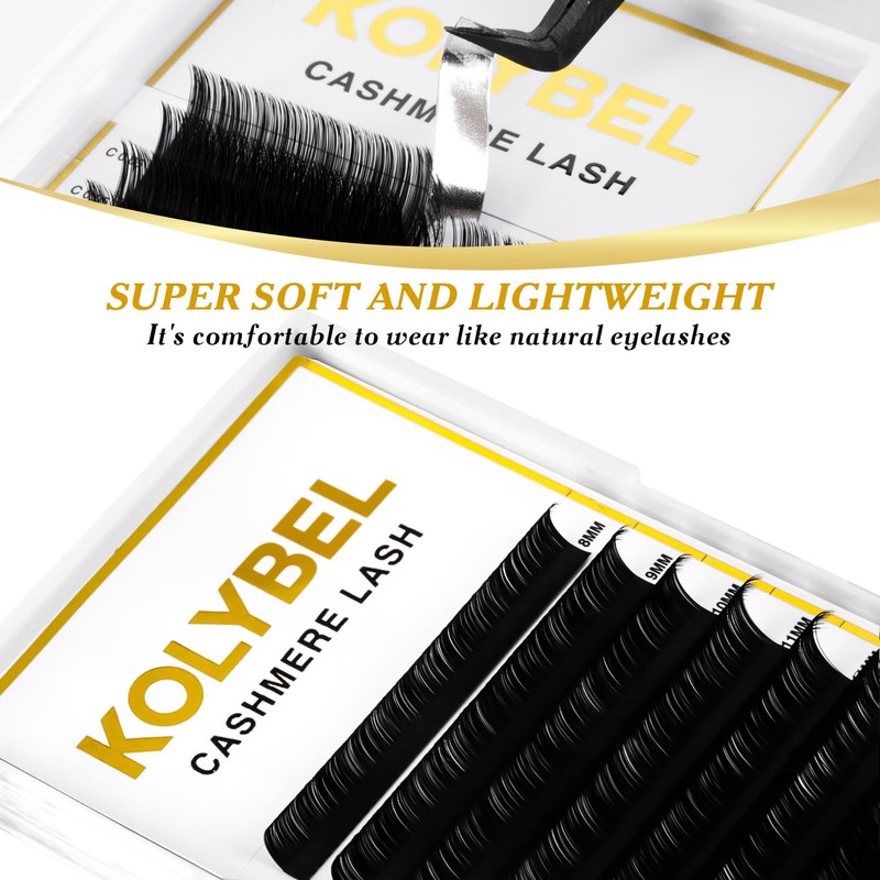 - Size Specifications:Cashmere Premium Eyelash Extension has 12 Rows/ Tray. KOLYBEL provide more size with you: 0.03/0.05/0.07/0.15 Thickness, J/B/L/C/CC/D Curl, 8-16mm Mixed Length/15-20mm Mixed Length/10-18mm Single Length.