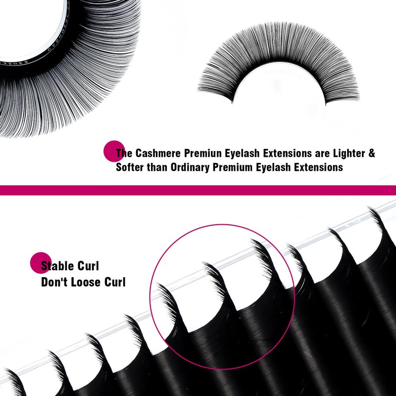 - Good Choice : Cashmere premium eyelash extensions are a great choice for Professional Salon,lash technician and beginners.Using classic eyelash extensions create easily a dramatic and natural look for your girls.