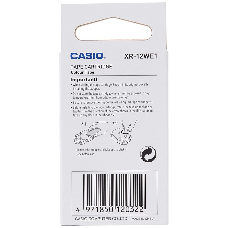 Casio 12mm Label Printer Cartridge Black Print on White Tape