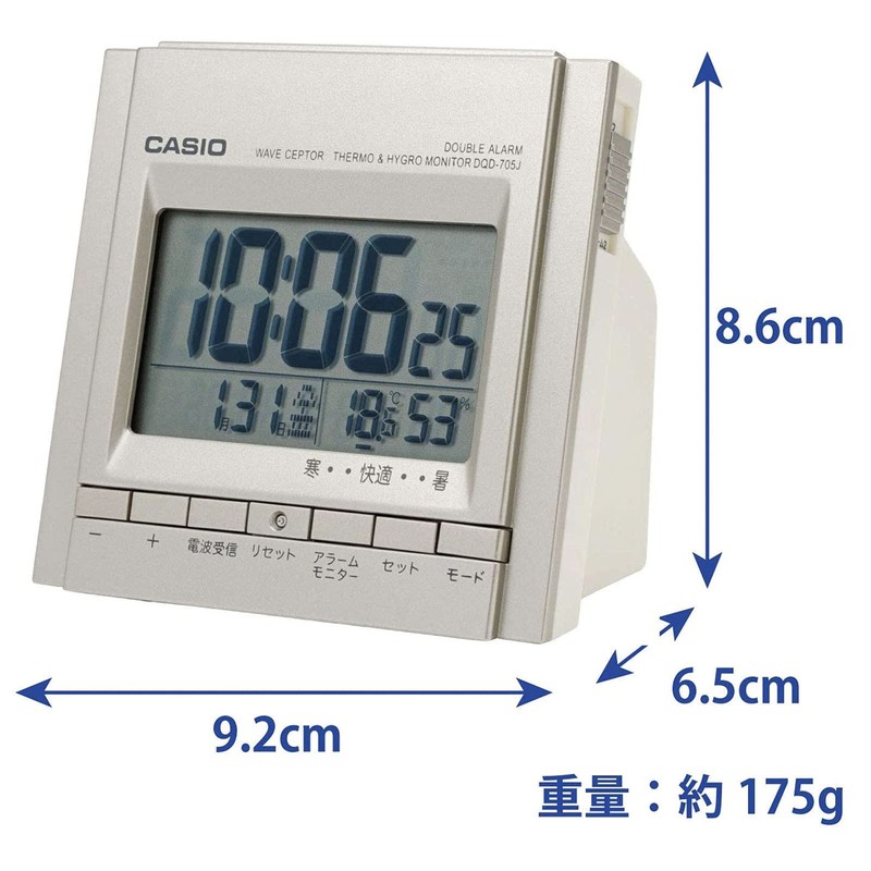 Casio DQD-705J-8JF Alarm Clock Radio Silver Digital Double Alarm Snooze Light Included