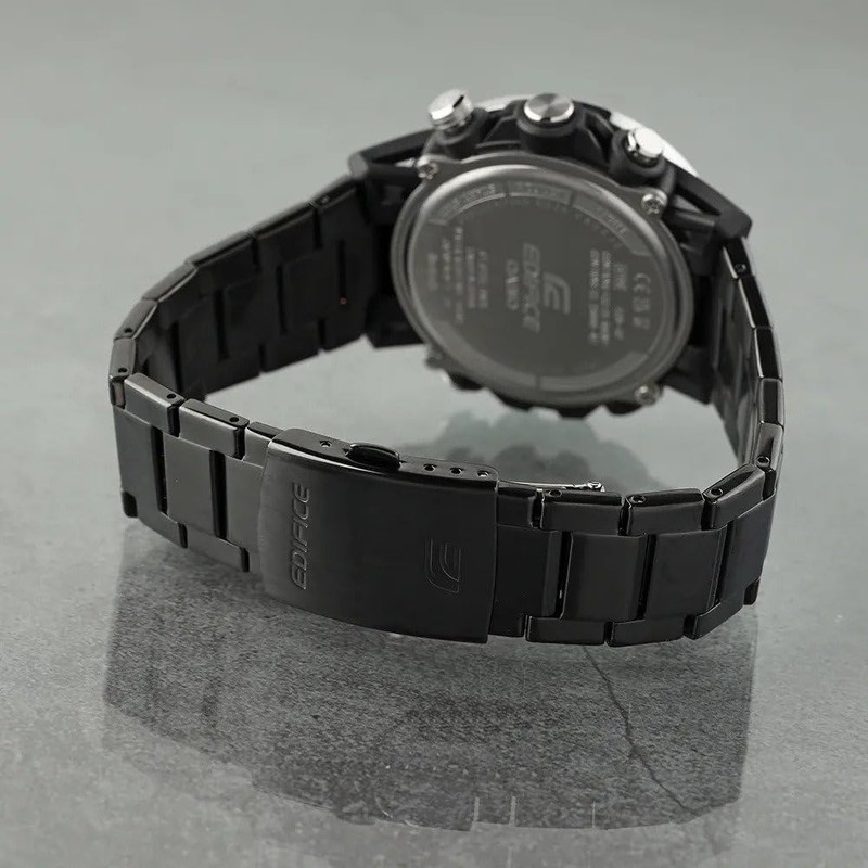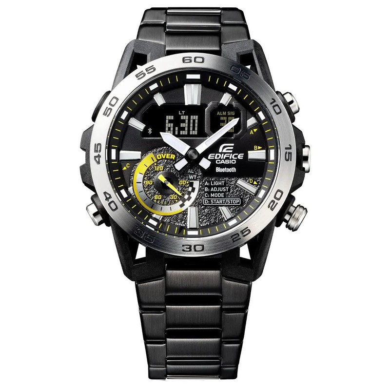 Casio ECB-40DC-1AEF Men's Quartz Watch, 52.00 mm Case Size with Black Analogue Dial and Black Plastic/Resin Bracelet, black, Bracelet