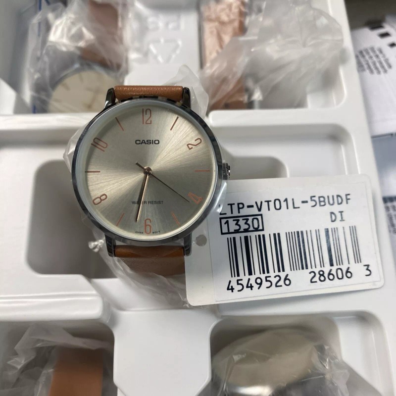 Casio LTP-VT01L-5B Women's Minimalistic Beige Dial Brown Leather Band Watch
