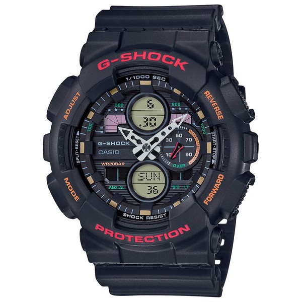 CASIO Men's G-Shock Duo Analog-Digital Watch, Red Lettering Bezel Black Face, Black Band