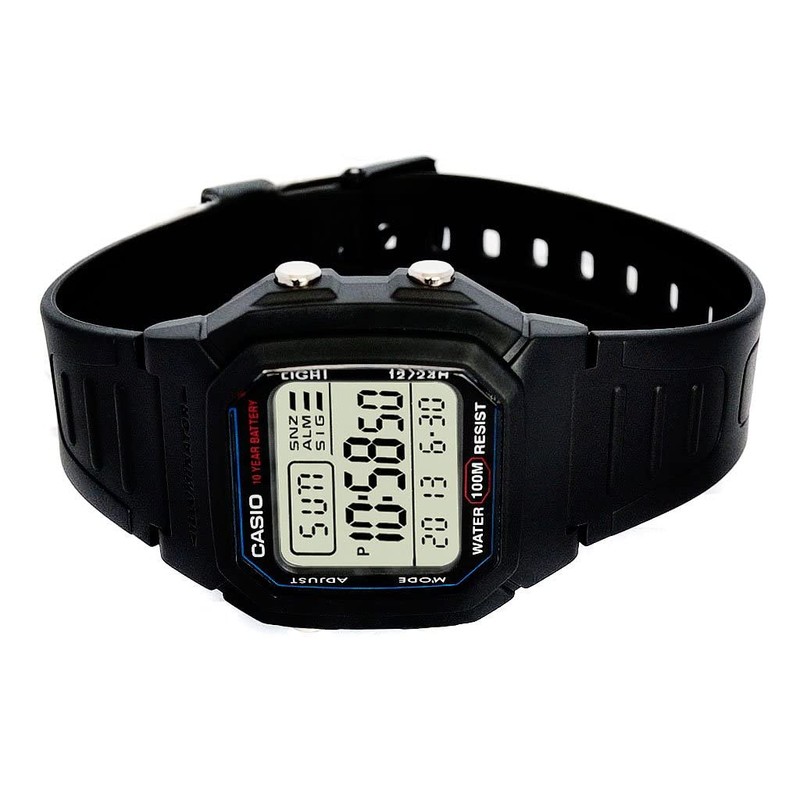 Casio W800H Series | Unisex Digital Watch | Black | 100 Meter Water Resistance | LED Backlight | 1/100 SEC Stopwatch | Dual Time | Multi-Function Alarm | Full Auto Calendar | 10 Year Battery