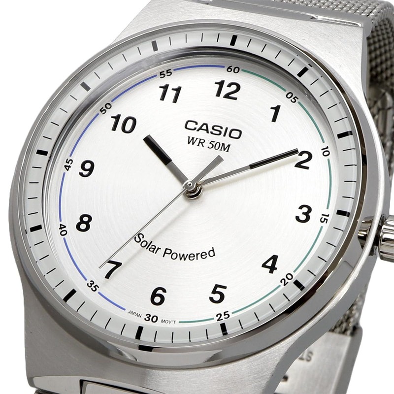 Casio MTP-RS105 Series Standard Solar Analog Wristwatch, Waterproof to 5 ATM, Men's, Silver Mesh Metal Band MTP-RS105M-7BV, Bracelet Type