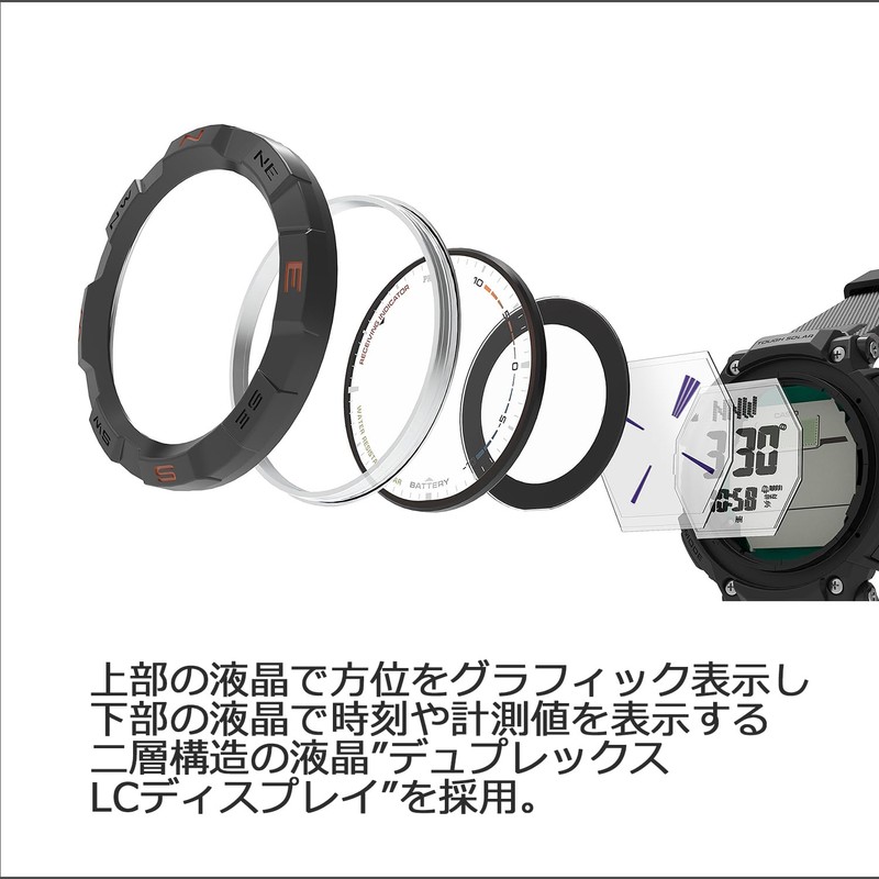 - Tough Solar: Casio unique solar charging system that uses solar panels that generate light even with a small amount of light and a large capacity of secondary batteries to ensure stable operation of various functions under strong loads