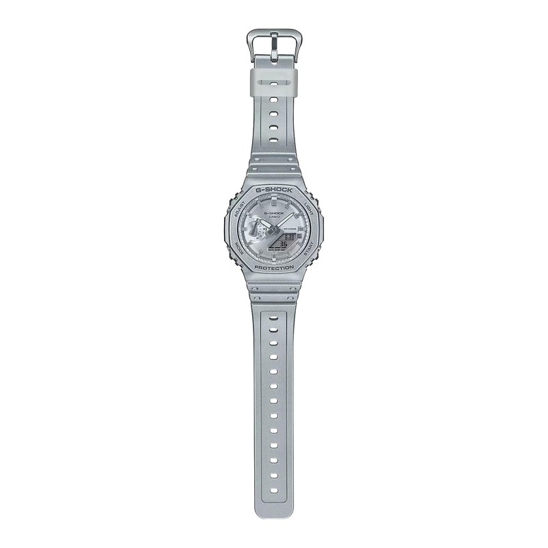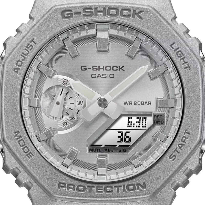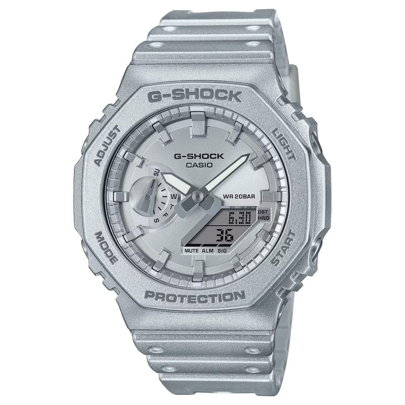 Casio Unisex 48.50mm Quartz Watch with Silver Analogue - Digital dial and Silver Plastic/Resin Strap Strap GA-2100FF-8AER