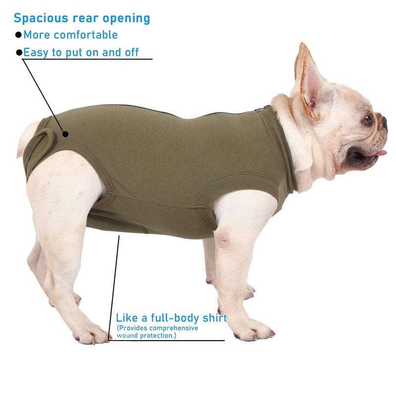 - BACK ZIPPER DESIGN - Our dog recovery suit is very easy to put on and take off. There is a row of anti-clipping zipper design on the back, which is more convenient to put on and take off compared to the tedious row of button clothes. Small pets don't have the tearing sound of Velcro, which makes them calm down and more conducive to the male female dogs cats recovery