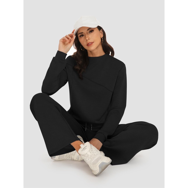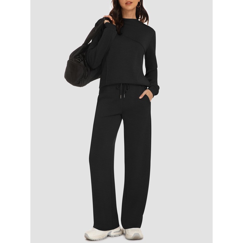 Casly Lamiit Lounge Sets for Women 2 Piece Casual Travel Sweat Suits Long Sleeve Mock Neck Tops Drawstring Pants Matching Airport Outfits Black M