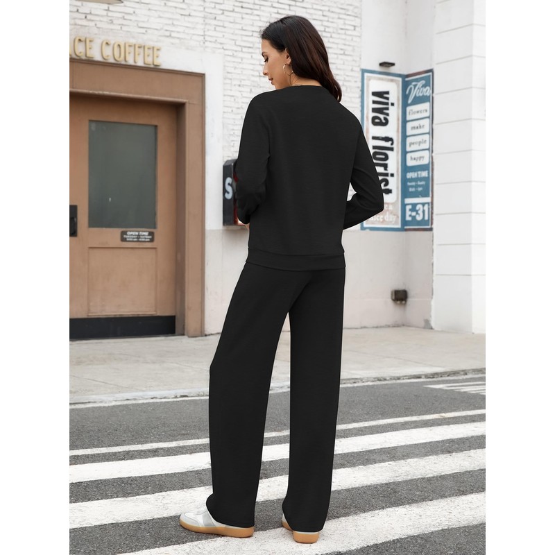 - Comfortable Design: Features a stylish boat neck, long sleeves top, and wide leg sweatpants with functional drawstring waistband and pockets. The minimalist lines of this dressy casual outfits offer a flattering fit blending ease with fashion