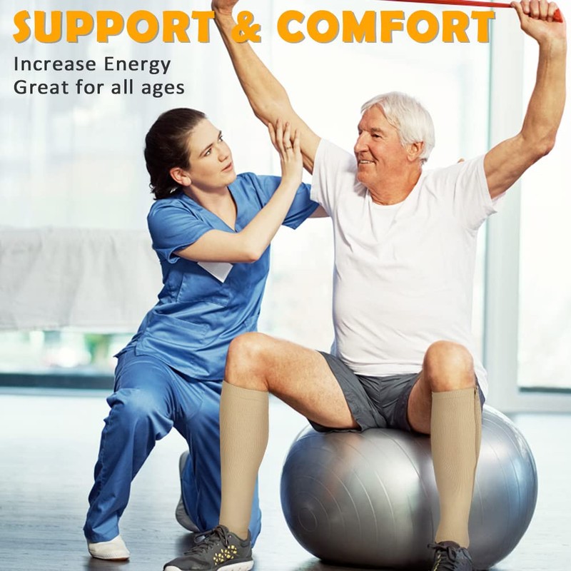 CASMON - 2 pares de calcetines de compresión con cremallera para mujeres y hombres, 15-20 mmHg, calcetines de apoyo alto para venas varicosas y edema, Beige, Large-X-Large