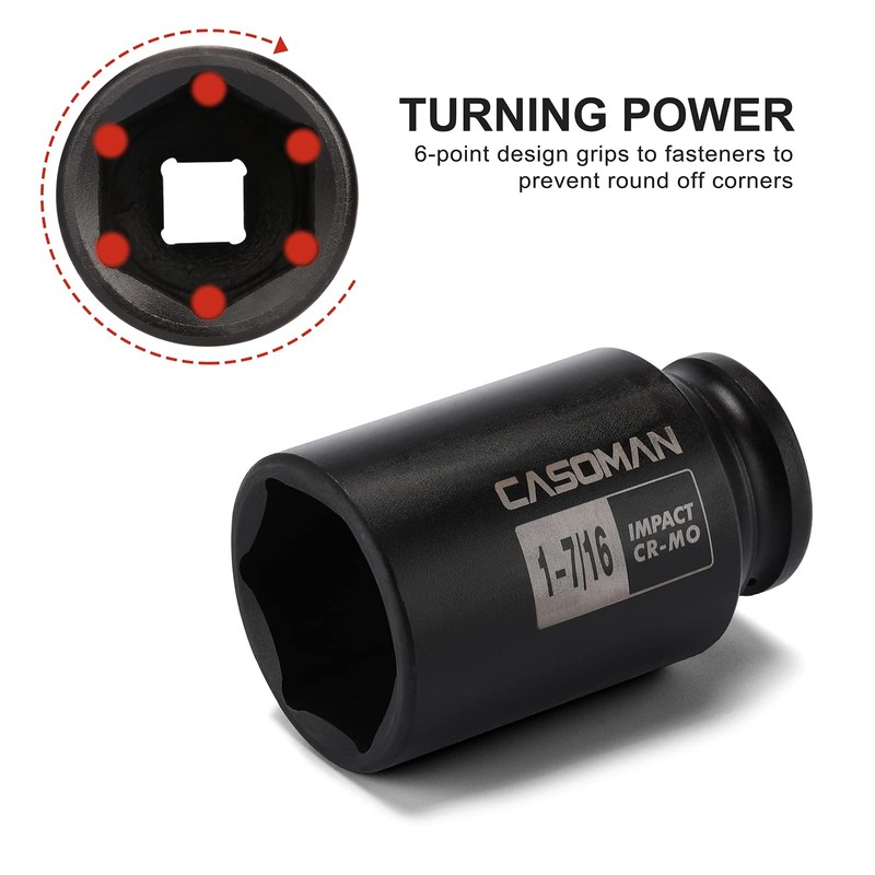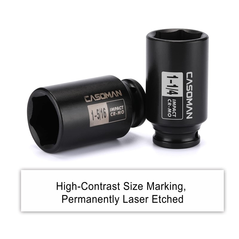 CASOMAN 1/2-Inch Drive Deep Spindle Axle Nut Impact Socket Set, 6 Point, CR-MO, SAE, 1" to 1-1/2", 8-Piece 1/2" Dr. Deep Impact Socket Set